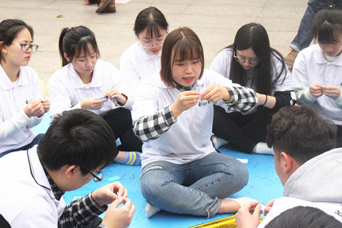 开幕式现场,我院8个系160名学生代表参加“流光溢彩”现场三角插手工制作比赛,各系参赛选手在指定的比赛区域里分工合作,细致耐心地完成了一件又一件精美的三角插作品,赢得了围观师生的一致好评。经过一个多小时的现场制作,按作品制作时间得分和各系代表投票得分计算总分,贸易系、商务系、计信系分别荣获一、二、三等奖,会计系、财管系、管理系、建工系、语言系荣获优胜奖。