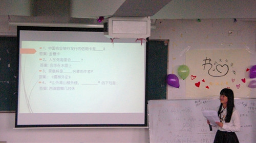 活动一开始,两位主持人向大家介绍比赛规则,到场嘉宾以及参赛班级。比赛分四轮,第一轮是必答题;然后是“你划我猜”,“你划我猜”考验的是队员间默契与知识的结合;第三轮是抢答。第四轮是风险题,这是考验心理素质以及知识面的一轮比赛。