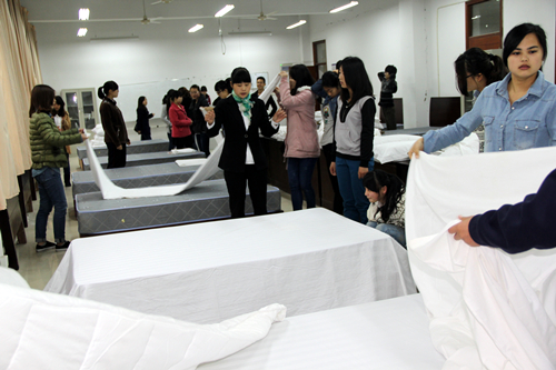 纳德酒店客房操作能手为纳德班学生技能培训