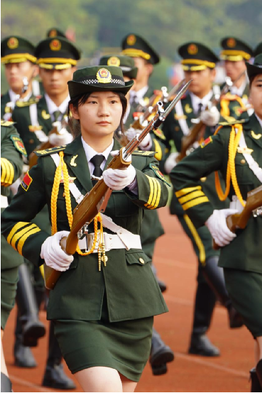 雄姿英发,气势昂扬,开幕式的序幕随着国旗护卫队铿锵有力的步伐郑重拉开。五颜六色的彩旗方阵迎风招展,绚丽多彩的花环方阵青春飞扬;裁判员方阵彰显专业素养,本着为运动员和赛事服务的宗旨,全心全意为运动会保驾护航。各二级学院方阵更是别出新意,百花齐放,他们身着运动服装,举着别具特色的道具,喊着嘹亮的口号,依次入场,表演精彩尽显专业学科特色,口号嘹亮展现长征青年风貌。计算机与信息技术学院方阵模拟键盘打字的按键上下起舞,创意十足;护理与健康学院的洗手舞展现了学生们的专业素养和精神风貌,时而腾空而起、时而摇头摆尾的舞狮展示了学生们的青春活力和积极向上;建筑工程学院的建模充分展现了学院学科特色。各方阵队伍各具特色的精彩表演彰显了长征学子在新时代潮头奋发向上的精神面貌,赢得在场观众的阵阵喝彩与掌声。