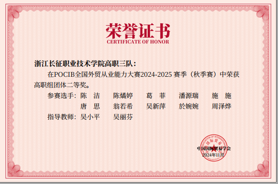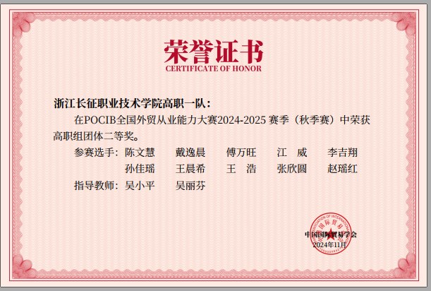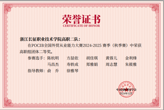 近日,第十四届POCIB全国外贸从业能力大赛获奖结果揭晓,我校商务与贸易学院的3支参赛队伍均斩获高职组“团体二等奖”。