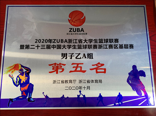 由浙江省教育厅、浙江省体育局组织的2020年浙江省ZUBA大学生篮球联赛历时8天,于2020年11月7号在浙江绍兴正式落下帷幕。由我校鲁陵老师带队的学校男子篮球队努力拼搏,胜不骄、败不馁,喜获2020年浙江省ZUBA大学生篮球联赛乙A组比赛比赛第五名的好成绩。
