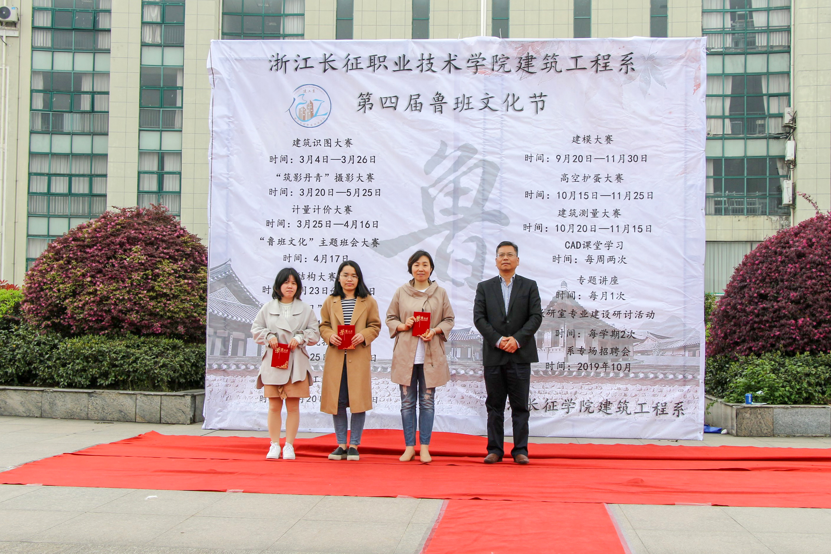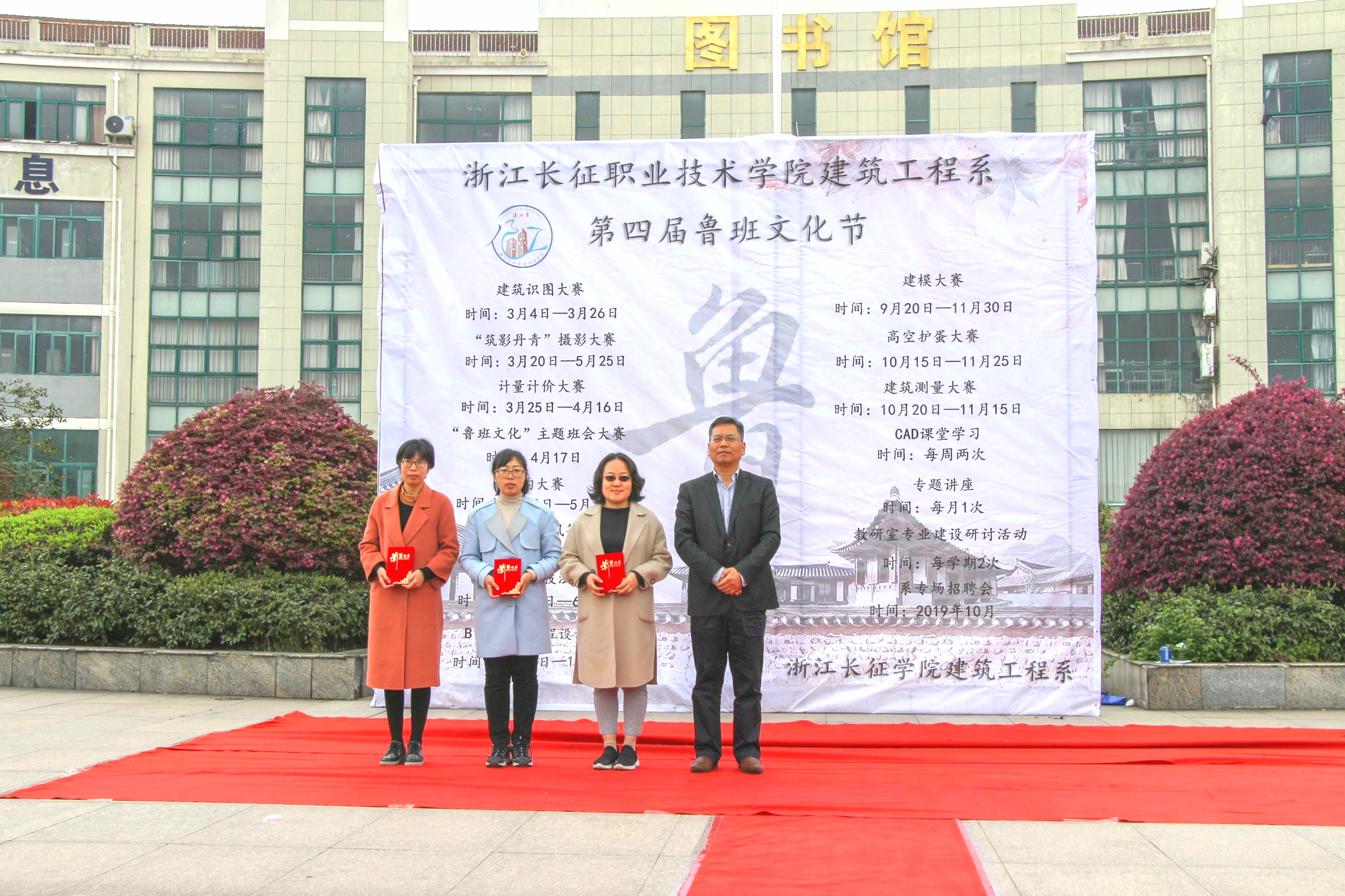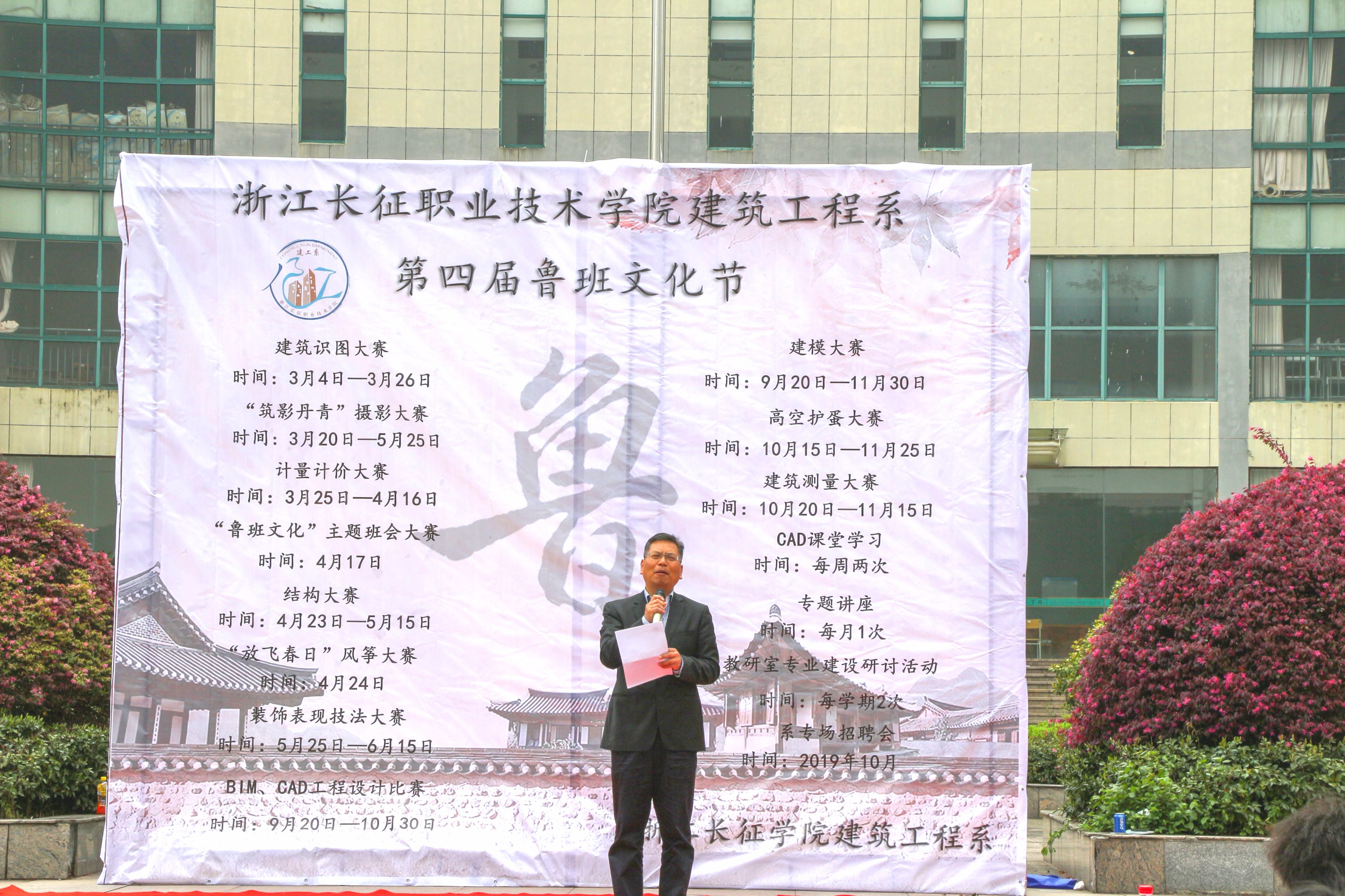 2019年4月10日下午,在这个春和景明、芳菲弥漫的日子,建筑工程系在校图书馆前隆重举行了第四届鲁班文化节开幕式。建筑工程系系主任高荆民、党总支副书记章剑飞、学工办副主任余泓、建设工程管理专业教研室主任叶智英、工程造价专业教研室主任杨琼、建筑装饰工程技术专业教研室主任付静、房地产经营与管理专业教研室主任徐圣泉以及建筑工程系200余名师生参加了开幕式。