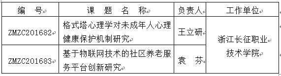 接浙江省民政厅办公室文件,浙民研〔2016〕113号:《浙江省民政厅公布2016年度浙江省民政政策理论研究规划课题立项名单的通知》我校王立研,袁芬两位老师获得立项。
