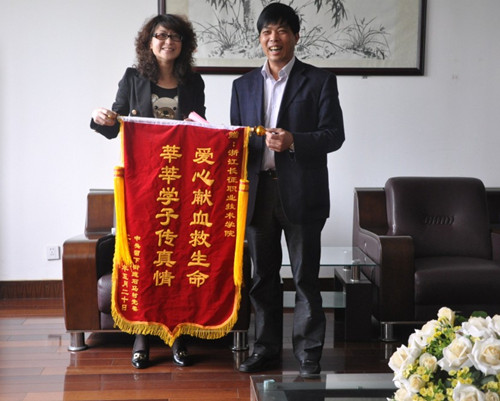 自5月16日发出“为石马村村民郑冬囡无偿献血的倡议书”以来,得到了我院学生的积极响应,5月18日下午近五十名学生在团委的组织下赴武林门献血点进行献血,共计11700CC血浆。病人家属表示,长征学子的这次善举,及时稳定了病人的病情,为后期的救治争取了时间。石马村党委给我校送来了一面“爱心献血救生命  莘莘学子传真情”锦旗,病人家属还送上一封感谢信,并对我院无偿献血志愿者做了极高的评价。