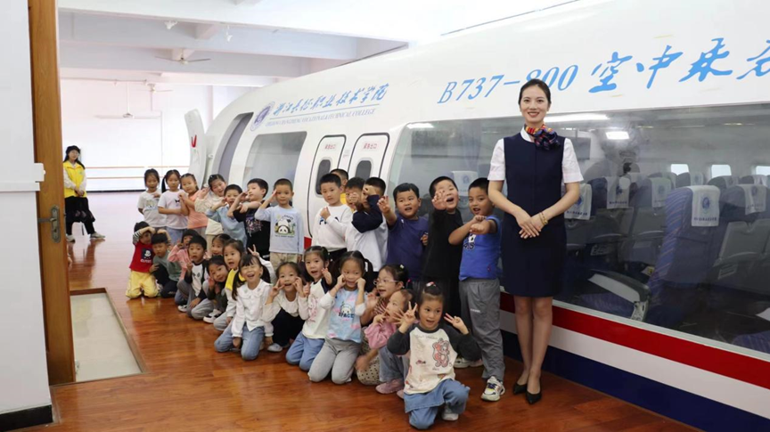 为激发孩子探索蓝天的兴趣、普及航空航天科技知识,近日,学校与西湖区小和山幼儿园携手开展了“飞机探秘之旅”研学活动。学校人文与教育学院学前教育专业、管理学院空中乘务专业的师生热情地接待了来访老师和小朋友。
