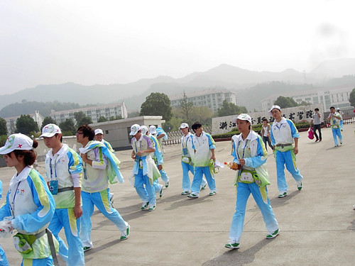10月10日、11日两天,我院131名志愿者参加在黄龙体育中心举行的全国第八届残疾人运动会开幕式的彩排及正式演出服务。根据安排,我校60多名志愿者在外围协助工作,微笑着引导所有来宾和观众,50名志愿者在内场协助推轮椅,真心真意的站在第一线为残疾人进行服务,20名志愿者负责特殊通道,将残疾人观众引导到无障碍看台,10名志愿者参加内场的摄像服务,协助摄像师调整机位,拍摄开幕式盛况,8名志愿者在志工部后勤帮助看管物资。开幕式的盛况很多志愿者都没有看到,他们只能在场外通过里面传出来的声音来感受。当会歌《我们都一样》响起来的时候,志愿者的自豪感油然而生。